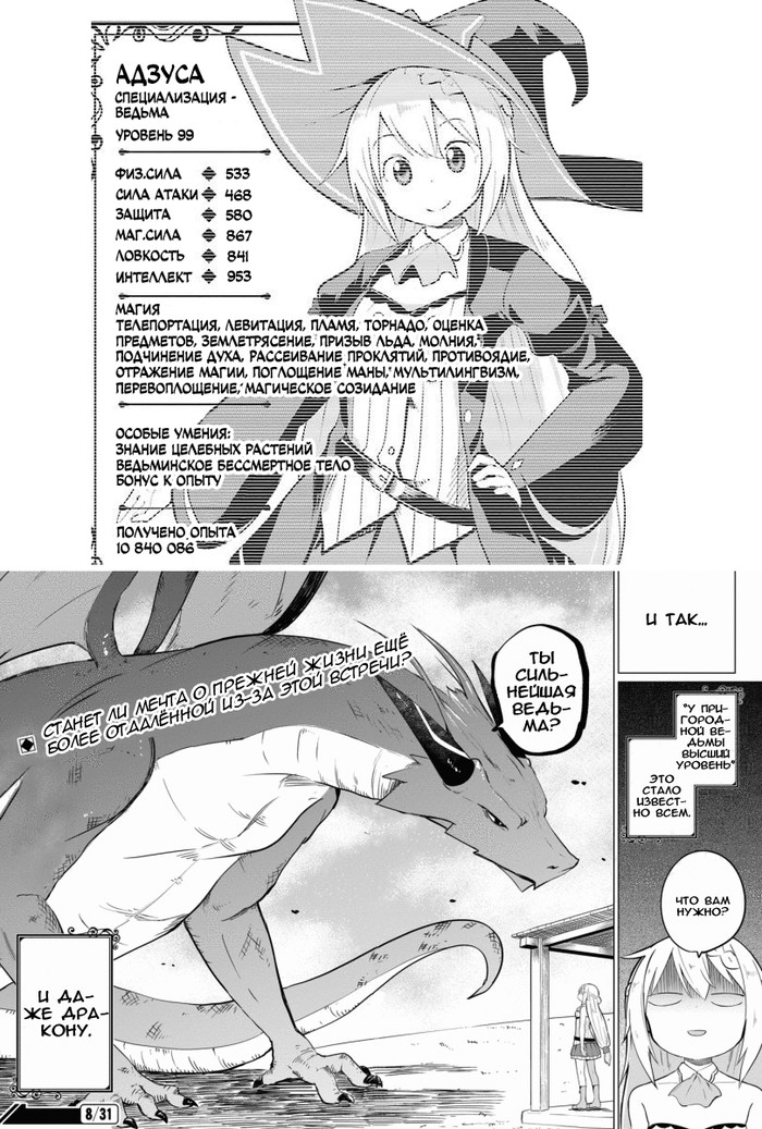В конце-концов ее спокойной и мирной жизни пришел конец потому что не только авантюристы, но даже драконы стали приходить к ней помериться силой ибо слух о сильнейшей очень быстро распространился несмотря на нежелание ведьмочки.