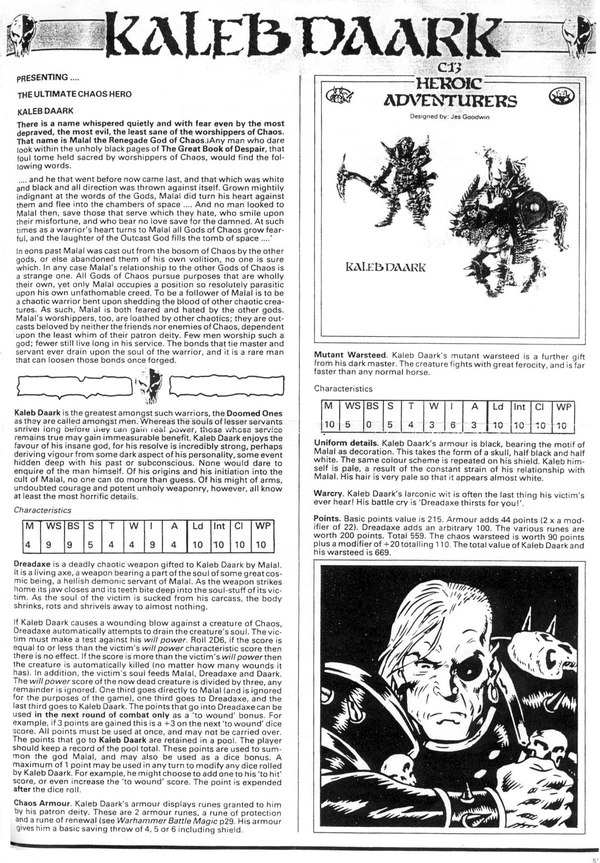 Кстати о 40к. Третья редакция кодекса Космодесанта Хаоса (1999-2002) представляет нам варбанду «Сынов Злобы» (Sons of Malice) всё так же с чёрно-белой расцветкой. Это самый, скажем так, горячий момент любого обсуждения о Малале, особенно среди любителей 40к. И про Сынов Злобы есть целая история в White Dwarf 281 и 303, где несколько Сестёр Битвы обнаруживают орден, в ходе 13 Чёрного Крестового Похода перешедший к Хаосу, однако, сражающийся по большей части на стороне Империума. Ничего не напоминает? Бонусом – имя главы ордена – Ба'Кель Драак, что является анаграммой имени Калеба Даарка, упоминаемого в начале. Впрочем, в том же материале, утверждается, что Мэлис – опять же, «всего лишь» один из множества демонов и всего-навсего является создателем топора, отнимающего души (ещё одна отсылка к WHFBRP), что делает Сынов Злобы всего лишь пасхалкой к прошлым работам.