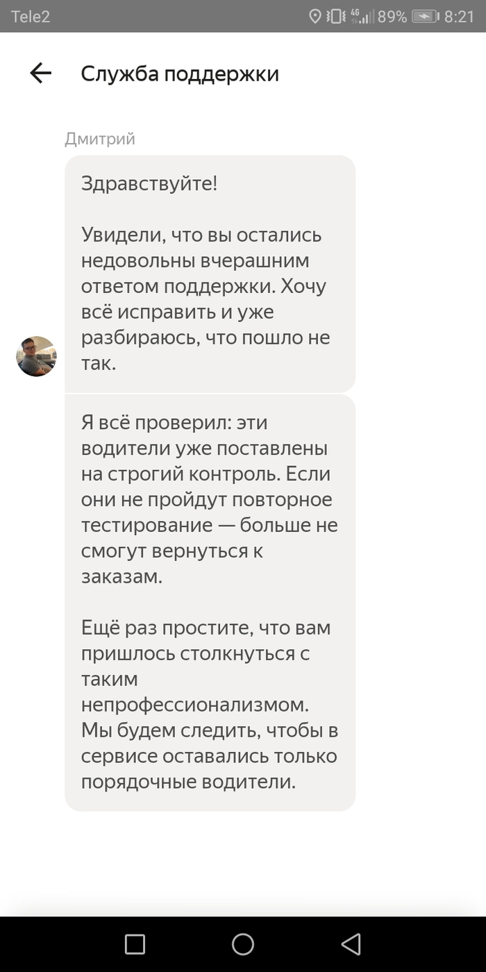 Им за 11 заказов платят 1100 рублей гарантировано. То есть они набивают себе заказов по 50-60 рублей, а получают за это 1100. А так как конечную точку они видят только по приезду на заказ, им не выгодно нас везти за 9 км, если по району они быстрее свои копейки "набьют". О клиентах в данном случае никто не думает. Я не люблю жаловаться, но как-то по-другому себе представлял субботний вечер. Поэтому пишу в поддержку, а получаю отписку: