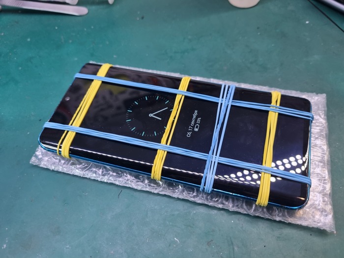 Затем склеиваем в вакууме, затем собираем, проклеиваем края дорогущим термоклеем и проверяем результат)