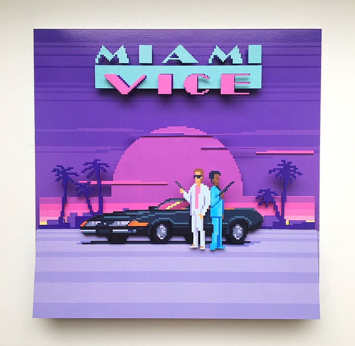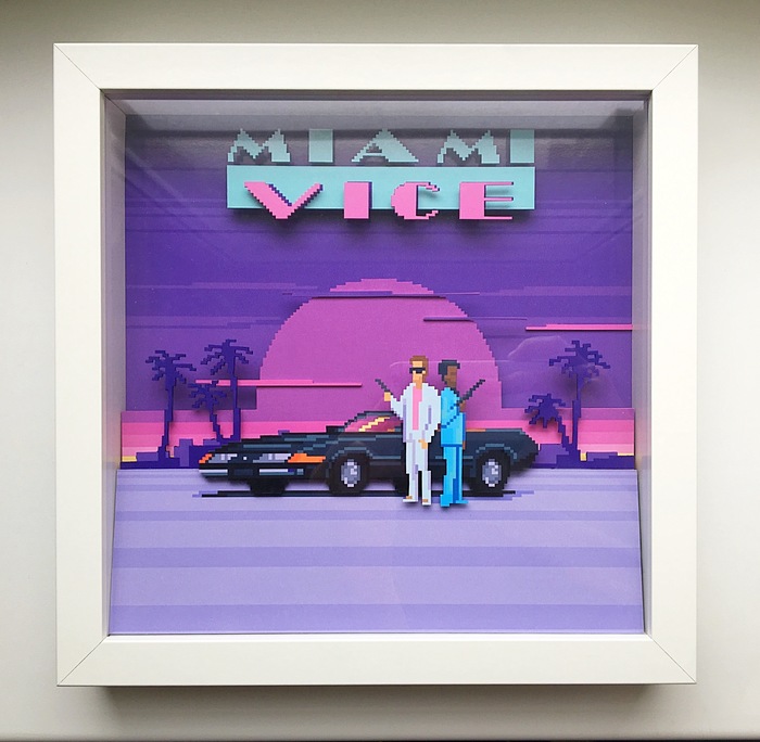 [моё] Пятничное Miami Vice 8 бит Pixel Art Видео Диорама Арт Длиннопост