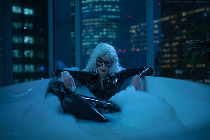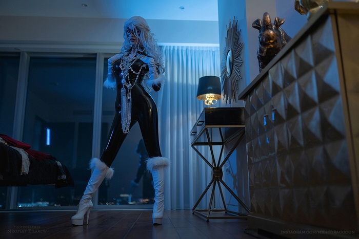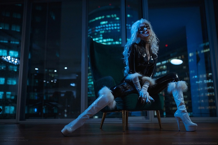 Черная Кошка давно стала одним из моих любимых и "постоянных" персонажей: впервые я сделала ее образ еще в 2017 году и с тех пор многократно возвращалась к ней с новыми идеями съемок и проектами. Сменила 4 костюма и даже неоднократно выгуливала ее на фестивали, что я делаю далеко не с каждым моим образом! Более того, у меня в арсенале так и сохраняются две последние версии костюмов - латексный: идеальный по посадке, фактуре и сделанный по потрясающе удачной выкройке, но очень сложный в носке; и "эко-кожаный" - не такой эффектный, но гораздо более простой в носке.