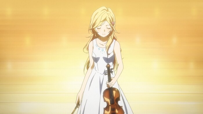 Спойлерить же нельзя? Нет? Ладно... Тогда скажу что это талантливая скрипачка, весёлая и энергичная девушка, немного экстравагантная, но всё же у неё есть на это причины. Когда она улыбается, когда просто сияет на сцене, в мире освещается одна комната одинокого анимешника. Простите, в любом случае персонаж имеет двойственную репутацию: одни её боготворят и называют "вайфу", другие считают... А впрочем опять же советую посмотреть аниме