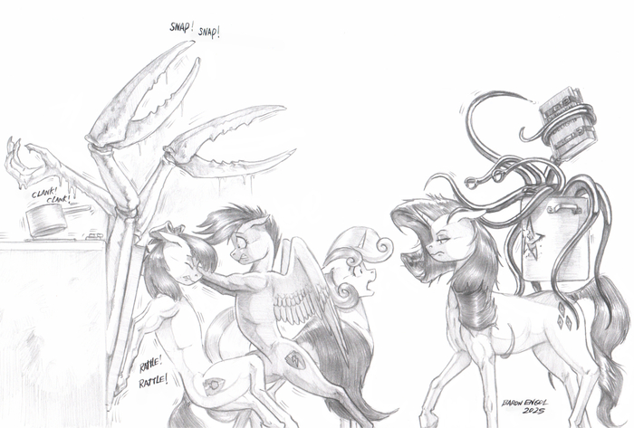 Потустороннее существо парило в своём алюминиевом котле над Рарити и, сверля взглядом Свити, поглаживало кобылу длинными, чёрными, блестящими щупальцами.