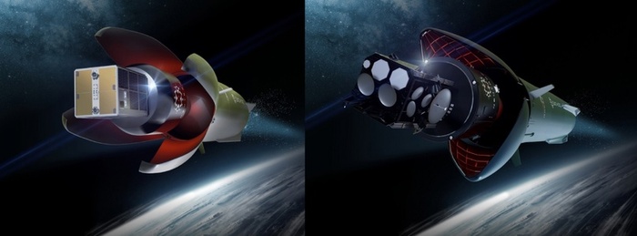 Rocket Lab продолжает работу над своей новой ракетой Neutron с оригинальной конструкцией. Первая многоразовая ступень (обязательное для новых ракет) на метановом топливе (тоже модно) имеет неотделяемый обтекатель полезной нагрузки, который возвращается на Землю вместе со ступенью. Внутри обтекателя находится вторая ступень с полезной нагрузкой. Вся конструкция радикально черного цвета, что намекает на конструкцию из композита. Русский разгонный блок «Фрегат» с полезной нагрузкой также находится внутри обтекателя «Союза». Только обтекатель одноразовый и носитель древний. Но можно предположить, что вторая ступень Neutron будет сложной (и долгой в доработке) и дорогой, так как потребуются независимые системы управления, связи и контроля с необходимостью многократного запуска. Интересный проект, который не повторяет тупо (как остальные) концепцию Falcon 9.