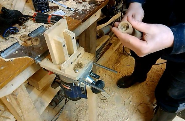 Шаблон прокатывается на любом вертикальном фрезере, я сделал себе такой из обычного советского рубанка, отпилив у него всю переднюю часть до самого фуганка.