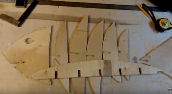 Рисуем части очень похожие на части рыбы и выпиливаем их.