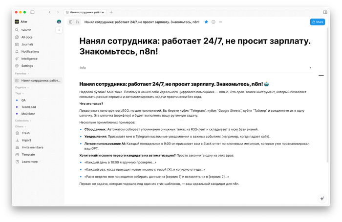 - Преобразуй неструктурированный текст в логически организованную заметку