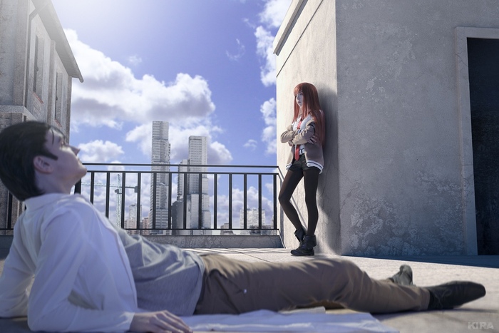 В съёмке участвовали: SomeoneFromRussia(Елизавета Смекалова / персонаж: Kurisu Makise) и Azrail(Юрий Булдовенко / персонаж: Rintarou Okabe). | За съёмку отвечала: KIRA photoarts(Кира Митенкова).
