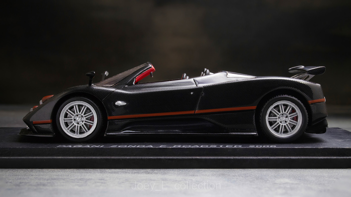 Три из пяти родстеров выкрашены в жемчужный белый с красными и карбоновыми акцентами (как данная модель). При этом каждый из них имеет свои узнаваемые мелочи. Модель представляет персональный автомобиль Горацио Пагани, который представлен в собственном «Музее Горацио Пагани» в Италии. Модель сделана на высоком уровне, косяков не замечено, весьма желанная в коллекции.