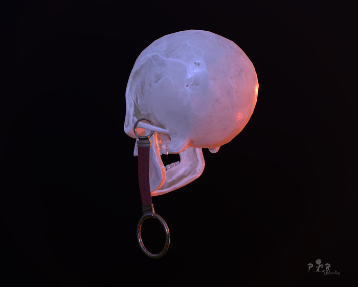 Большинство тут увидят обычный стилизованный череп, но для избранных при виде его сразу в голове вспомнятся слова "Эй как дела шеф". Олдскулам посвящается, а тут можно покрутить Мортэ : https://www.artstation.com/artwork/YaV2q3