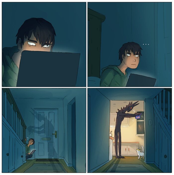 Новых комиксов у автора пока нет. Есть старые рисунки в архиве Tumblr если кому интересно https://pocketss.tumblr.com/archive