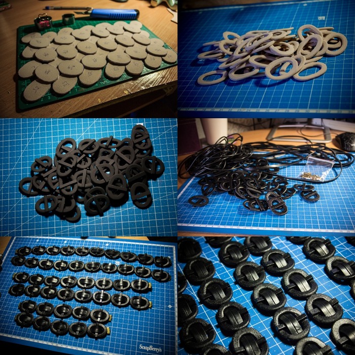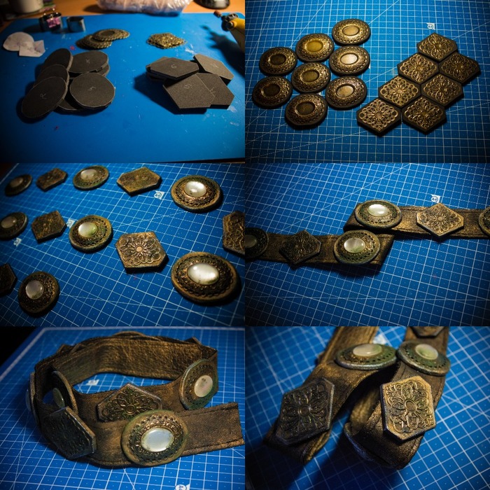 И я решила её кардинально: взяла Eva-foam 3 мм, вырезала, обработала края, покрасила, покрыла лаком… 46 овальных элементов. Ибо Сион безумна, если дело касается каноничности! :)