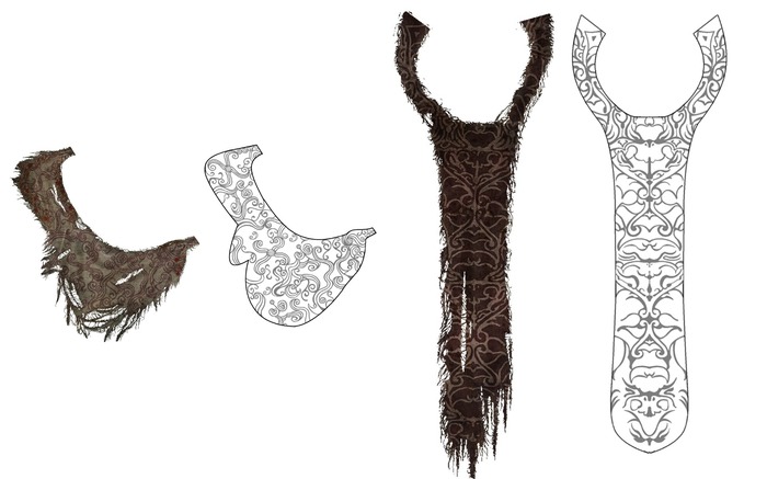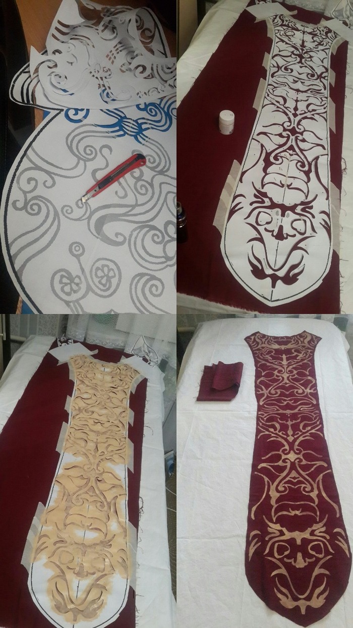 Для этого мне пришлось перерисовать весь узор с порванных текстур в игре, чтобы я смогла распечатать его и использовать на ткани: