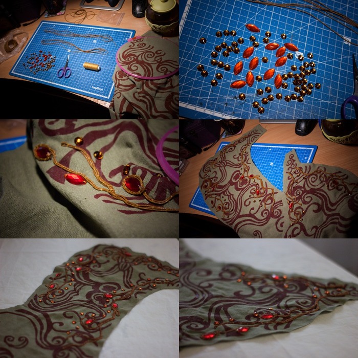 Вышивка на шарфе была выполнена из вощёного шнура и страз. Раз она в каноне есть — нужно сделать обязательно!