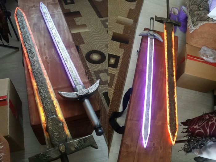 Признаюсь, я впервые делала мечи в принципе, ещё и с рассчётом под подсветку внутри, так что это было оооочень сложно.