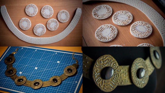 Ожерелье на шею было делать проще всего: основа из Eva-foam 3 мм, камни, контур и всё та же покраска акрилом: