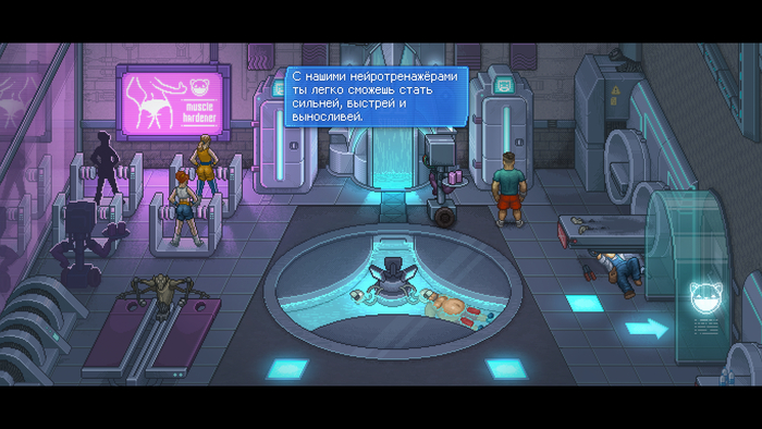 По сути, тренер у входа не врал: в спортзале одной кнопкой можно стать молодым Шварцем. Да, это уныло и бьёт по реализму, но у нас на дворе всё таки киберпанк.