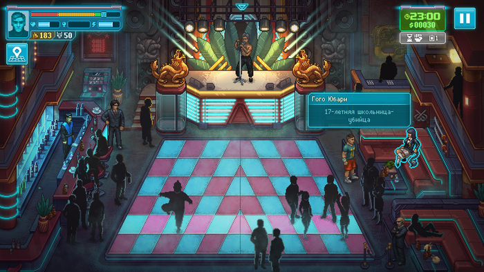 Также стоит отметить, что тут много отсылок. А и есть клуб, где после долгого боя, имея низкий уровень развлечений, можно танцевать или поговорить со школьницей.