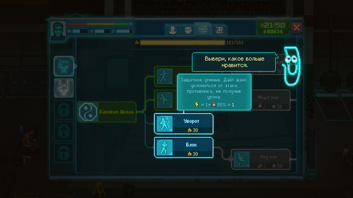 Второе это непосредственно развитие персонажа. Как обычно оставили прокачку ударов и школы, но теперь нужны не только деньги, но и ГП очки