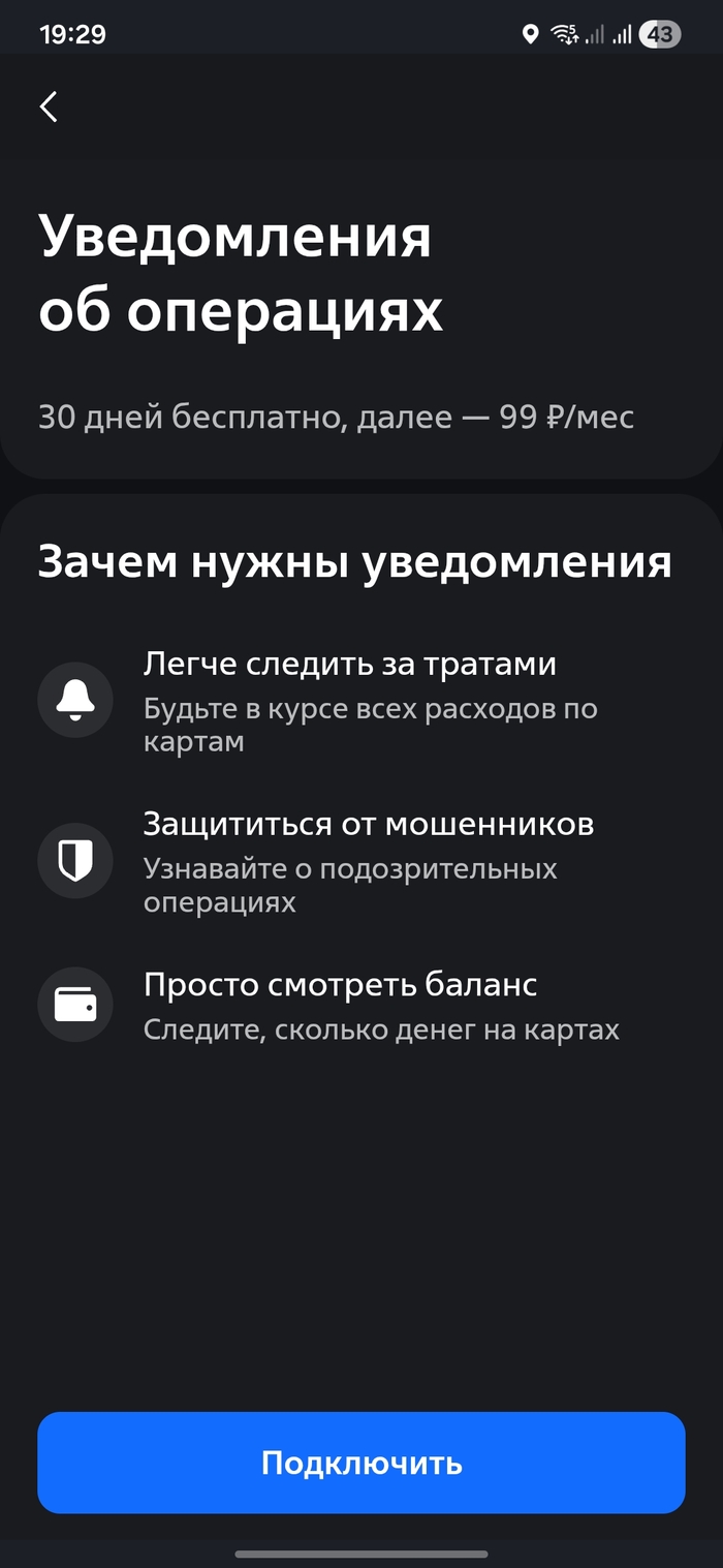Ну вот и до втб дошла очередь с платными уведомлениями аж 99р/мес