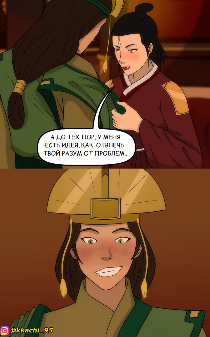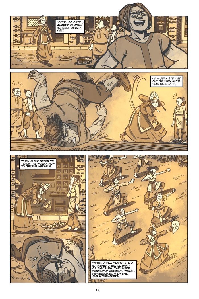 Таким образом, мы узнаем что Ранги научила Киоши данному боевому стилю, а Аватар в свою очередь обучила Воинов Киоши, и дополнила данный стиль своими веерами.