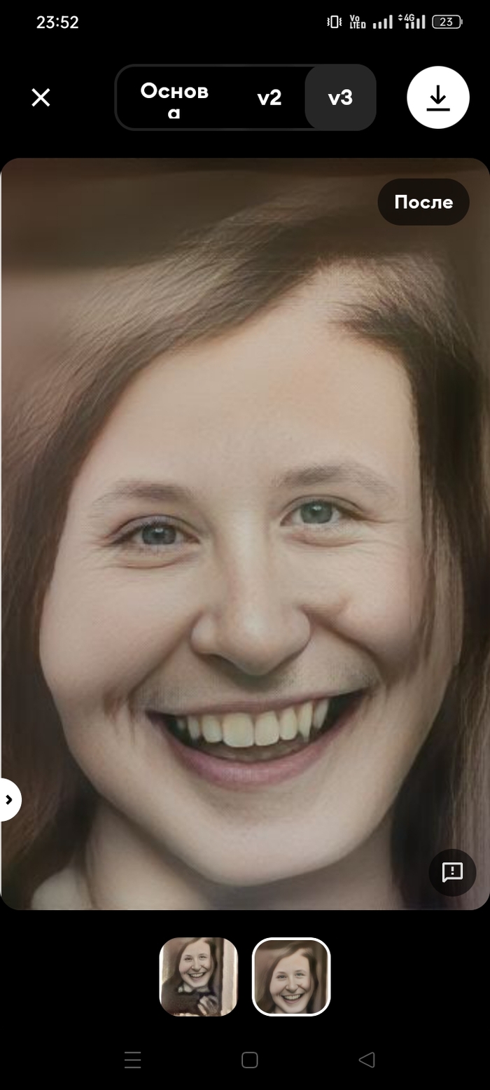 Красивый мужик был мой прадед, однако) и знаете, в чем для меня магия приложения Ремини? Он реально настолько улучшает разрешение фото, что для меня кажется прям волшебством, что из оригинала размером с почтовую марку оно делает фотографию, из которой можно потом хоть постер размером с ватман распечатать, качество не потеряется.