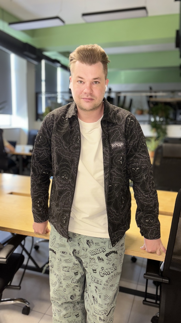 Еще слышал, что у нас в индустрии есть фанаты Ripndip. Это бренд, который создал скейтбордист буквально у себя в гараже. Он просто захотел сделать одежду для своих корешей и нарисовал персонажа Lord Nermal, кот, который теперь присутствует на всех типах одежды бренда Ripndip. Мне максимальная близка эта история, поэтому у меня много вещей от этого производителя.
