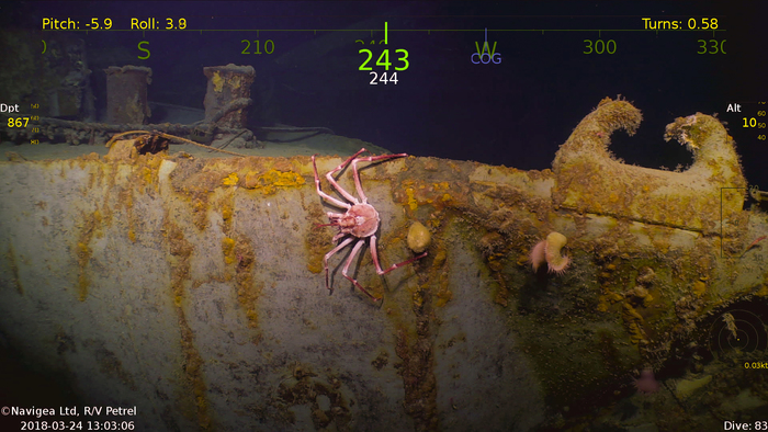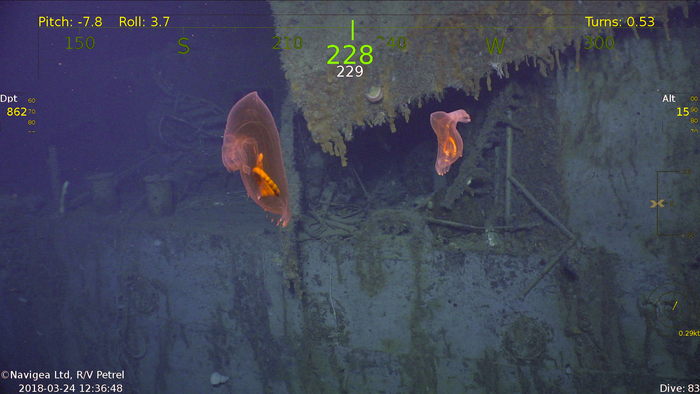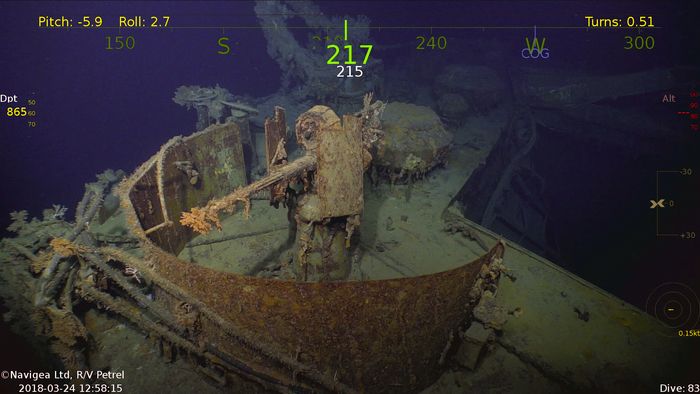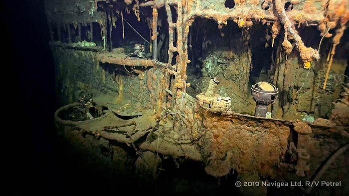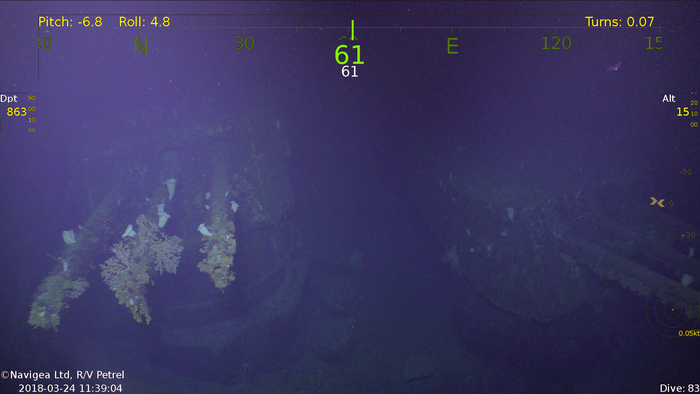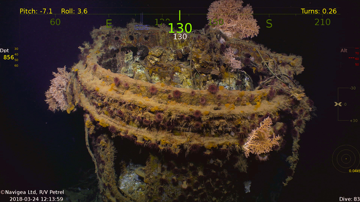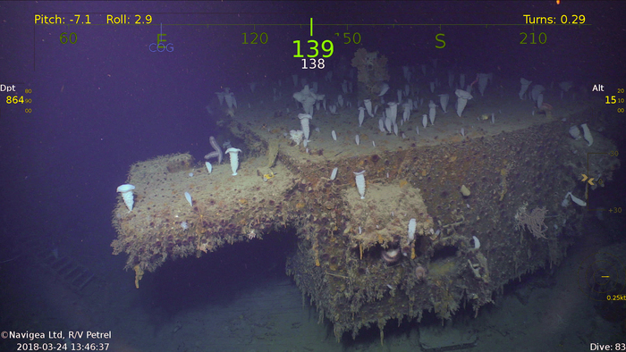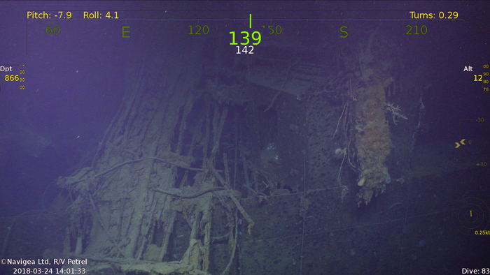 Съёмки затонувшего 13.11.1942 года в Соломоновом море севернее острова Гуадалканал японского линейного крейсера IJN Hiei. Останки корабля были обследованы 31 января 2019 года экспедицией, базировавшейся на борту научно-исследовательского судна RV Petrel. Экспедиция финансировалась фондом Пола Аллена — сооснователя компании Microsoft.