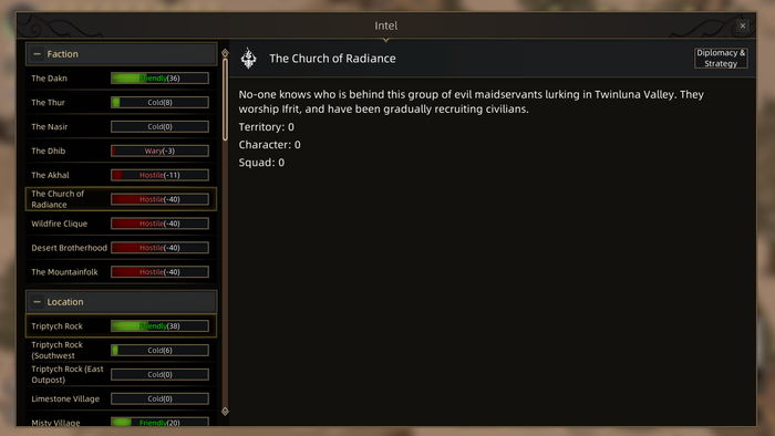Куча фракций населяет сей мир и непрестанно ведет борьбу между собой на глобальной карте, аки в Mount&Blade: да да, пылит по локациям отрядами в реальном времени, прогоняя игрока с его тремя бомжами прочь с дороги.