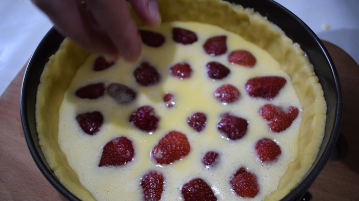 2. Низ блюда я смазываю тонким слоем крема и выкладываю слоями печенье. Каждый слой печенья обильно покрываю заварным кремом. Всего пять слоев.