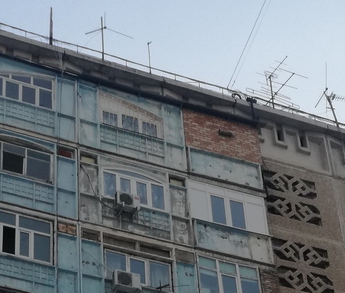Живу в этом же доме. Краем глаза конечно замечал что с последними балконами что то не так... Но у нас все балконы или утеплены или расширены, как ласточкины гнезда короче. Но после просмотра сериала "Во все тяжкие" я все представляю что там живёт Уолтер Уайт и варит свой мет. Да и дым из трубы идёт иногда. Потом я задаюсь вопросом как там живут люди, без солнечного света то? Ну и вы заметите что у нижних есть кондеры. Это потому что летом у нас до +40. Ну а эти с замурованным балконом как живут? Так много вопросов без ответов. Ну а спросить страшно, вдруг там действительно Уолтер Уайт!