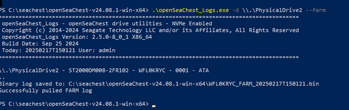 .SeaChest_LogParser_FARM_x64.exe --inputLog CseachestopenSeaChest-v24.08.1-win-x64WFL0KRYC_FARM_20250217T150121.bin