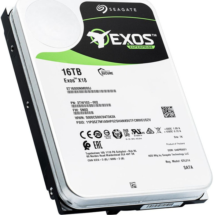 Объёмный жёсткий HDD диск Seagate Exos X18 c 16 ТБ памяти. Стоит такой 18 800 руб. Ссылка на него