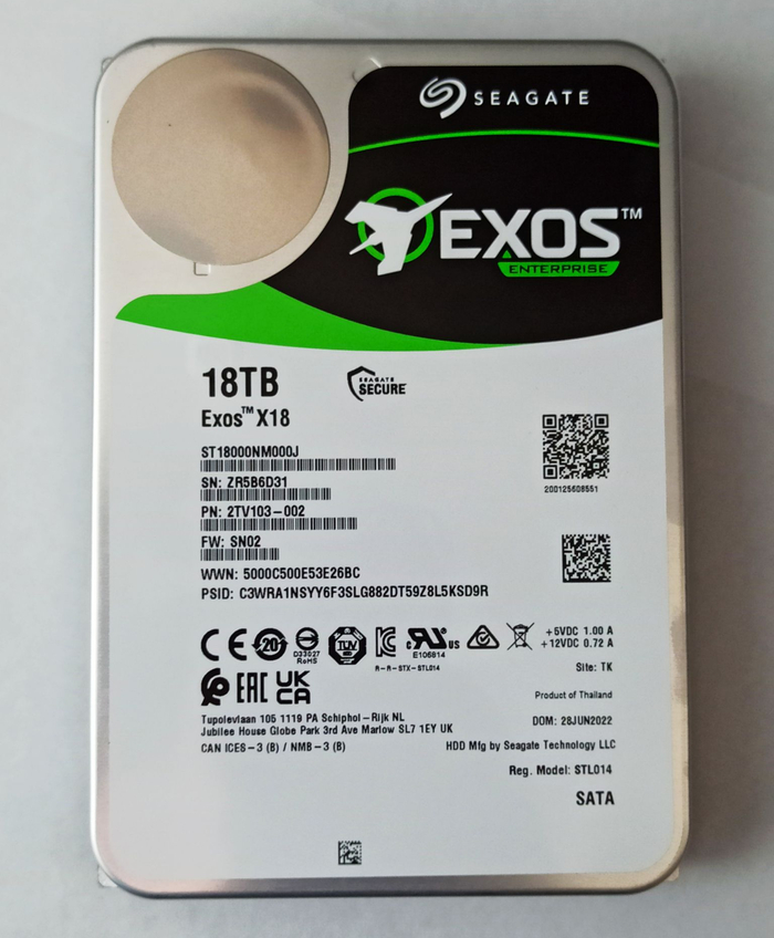 Жёсткий диск Seagate Exos X22 с 22 ТБ памяти. Технология записи CMR гарантирует стабильную скорость независимо от объема данных. Устройство предназначено для серверов: надёжность диска обеспечивает постоянную работу и непрерывные нагрузки. Стоит такой около 45 000 руб. Ссылка на него