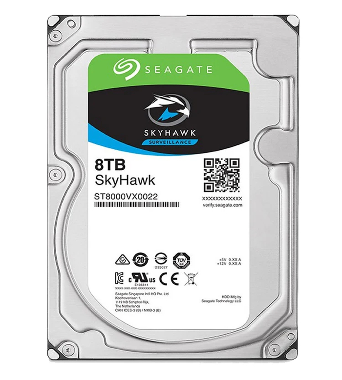 Жёсткий диск Seagate SkyHawk емкостью 8 ТБ является производительным и надежным запоминающим устройством, которое может использоваться в составе систем видеонаблюдения. Seagate SkyHawk AI позволяет хранить довольно большой массив информации и способен справляться с круглосуточными интенсивными нагрузками. Данный накопитель характеризуется скоростью вращения шпинделя 7200 об/мин и объемом кэш-памяти 256 МБ. Фирменное ПО SkyHawk Health позволяет выполнять мониторинг накопителя и управлять доступными параметрами. Подключение посредством интерфейса SATA III обеспечивает широкую совместимость и удобство установки в оборудование. Стоит такой 13 900 руб. Ссылка на него