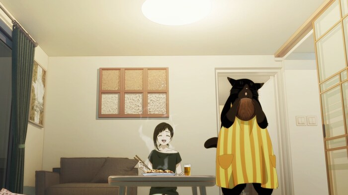Снова разбавим убийства и будущее вот таким аниме на взрослую тематику. Да взрослое! Ибо перед нами алюзия на скуфа и альтушку. Дело в том что героиню зовут Саку. Она жила одна пока не подобрала чёрного кота, и не принесла его домой. Кот оказался говорящим, двухметровым и ещё отличным поваром. Считай скуф, что ждёт с работы Саку, и любит также смачно поесть. Но сама суть аниме во взрослых ситуациях, которые хоть и наполнены смешными нотками, но отдают немного грустью. Я просто живу один с двумя котами, и они мне не готовят. А альтушку так и не встретил((