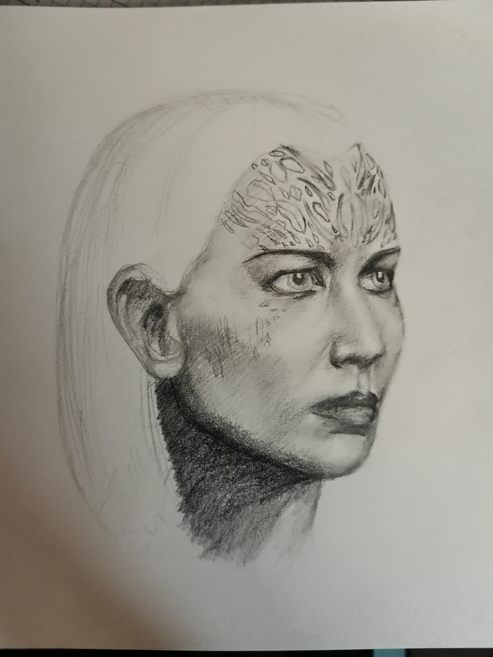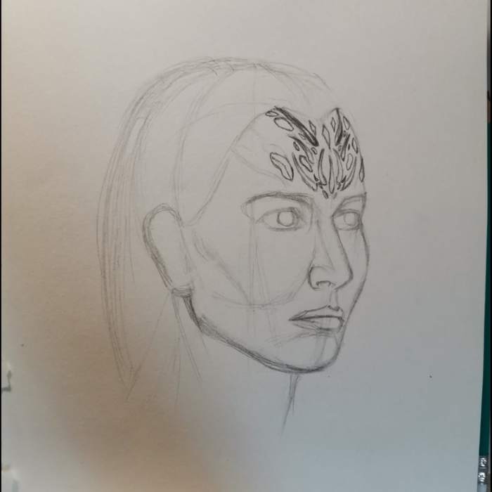 Для меня это был первый портрет с попытками использовать построения, о которых обычно написано в учебниках. Поначалу это выглядело странно