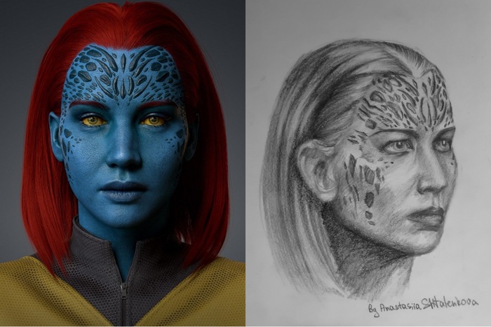 Ещё в прошлом году начала рисовать Мистик из людей Х в рамках #sixfanarts