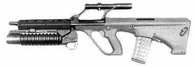 Штурмовая винтовка Steyr AUG — это автоматическое оружие с магазинным питанием, воздушным охлаждением сменного ствола, газоотводной автоматикой, скомпонованное по схеме буллпап .