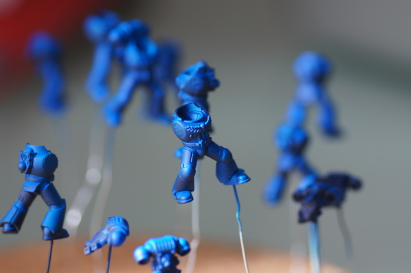 Всем привет! О вселенной warhammer 40k знаю давно. Сам в настолку не играю, в моем представлении слишком тяжелый порог вхождения, но Питерская - весна/зима располагает к домашнему хобби. Поэтому решил купить/собрать/покрасить коробочку Space Marine Tactical Squad, чтобы поставить рядом с монитором )). Обратился к классике и пафосу -ультрамаринам. Малый вид коробки и небольшое количество литников в моем представлении должны были обеспечить два-три дня работы (собрал да покрасил). Но как только я приступил к работе, пришло четкое понимание - это надолго. Ниже я выкладываю некоторые этапы своей работы и много фоток итога.