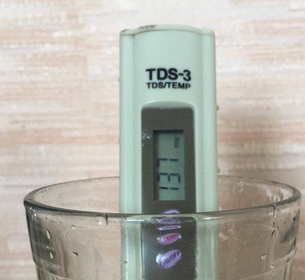 Пришла мне месяц назад такая штука, как TDS-метр для воды. Грубо говоря, оценивает примеси в воде из солей, минералов и прочих взвесей.
