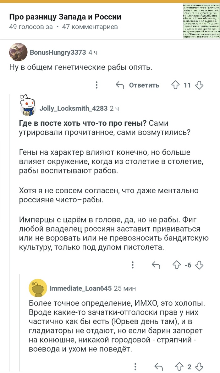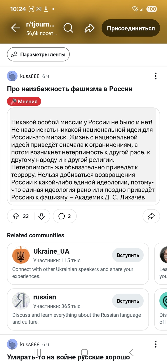 И, честно сказать, мне самому было стыдно за то, что я был участником этого цирка. Я долго пользовался Реддитом и помню времена 2022-2023 года, когда я подвергся западной пропаганде. Надо признаться, что она действовала очень хорошо. Я помню времена, когда многие люди начали вдруг говорить, что они за Украину, что Россия – зло. И учитывая, что я на реддите столкнулся с культурой отмены по отношению ко мне, я стал на какое то время "либерахой". Начал стыдиться своего русского происхождения и какое-то время сидел на этом сабреддите. Создавал посты о том, как я мечтал о развале России, чтобы она исчезла с лица Земли. Даже страстно представлял у себя в голове, как НАТО оккупировала Россию и начала заниматься жёстким перевоспитанием россиян. Тогда я был неопытным в плане общения в интернете, и я сам был в шоке, что мои мозги были промыты пропагандой.