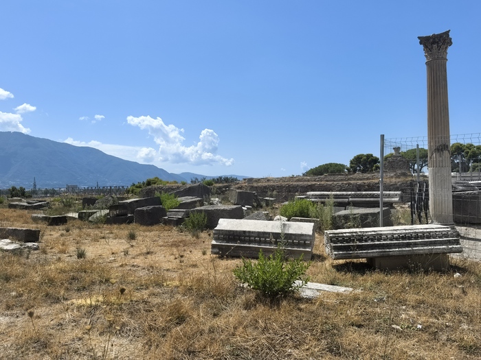 Многое закрыто и закопано, камни и колонны лежать как упало так и лежит