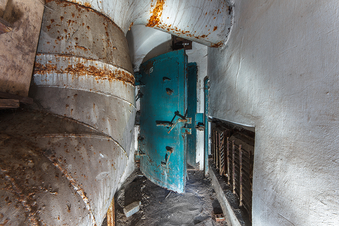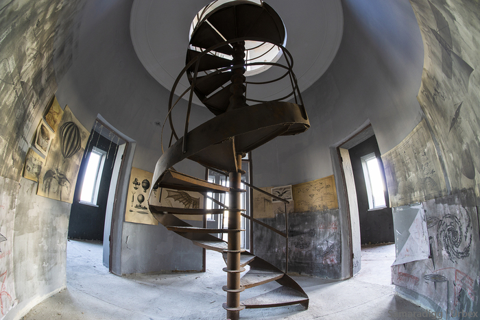 Сейчас оно уже потеряло былую красоту, но его все еще поддерживают в приличном состоянии. Внутри довольно чисто и аккуратно. На стенах сохранились рисунки и схемы. Наверх устремляется металлическая винтовая лестница.
