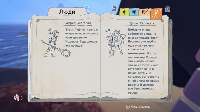 Также есть дневник и возможность читать про различных персонажей, которых встречаем на своём пути