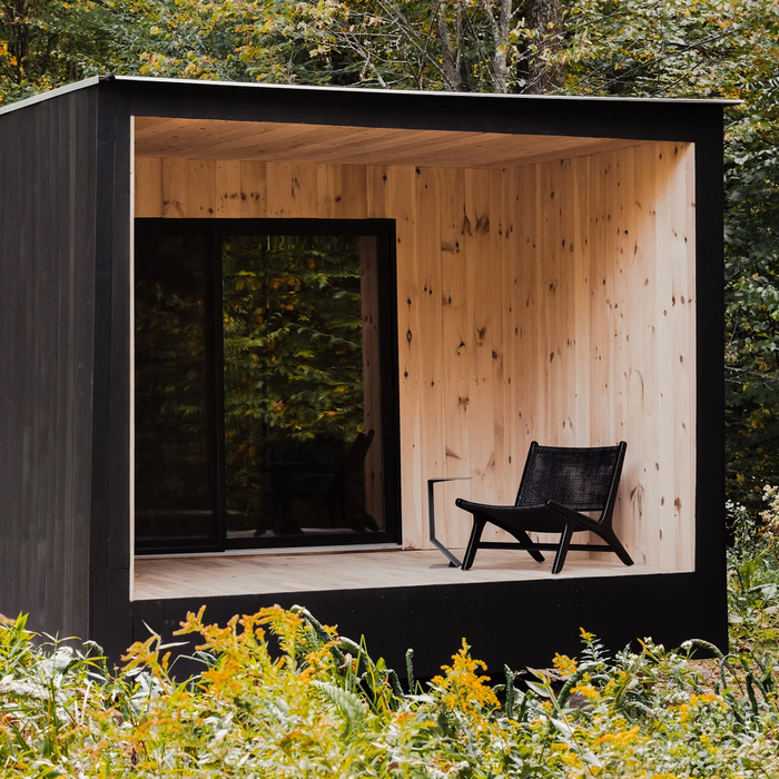 В этой крошечной кабине американской студии Hannah нет электричества и водопровода, а внутренняя температура регулируется пенопластом и дровяным камином.