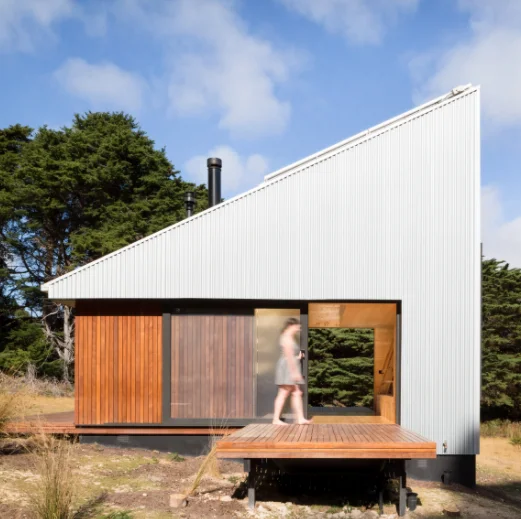 Домик Bruny Island был спроектирован Maguire + Devine для клиента, который хотел минималистичный автономный дом на Тасмании, в котором было бы все необходимое.